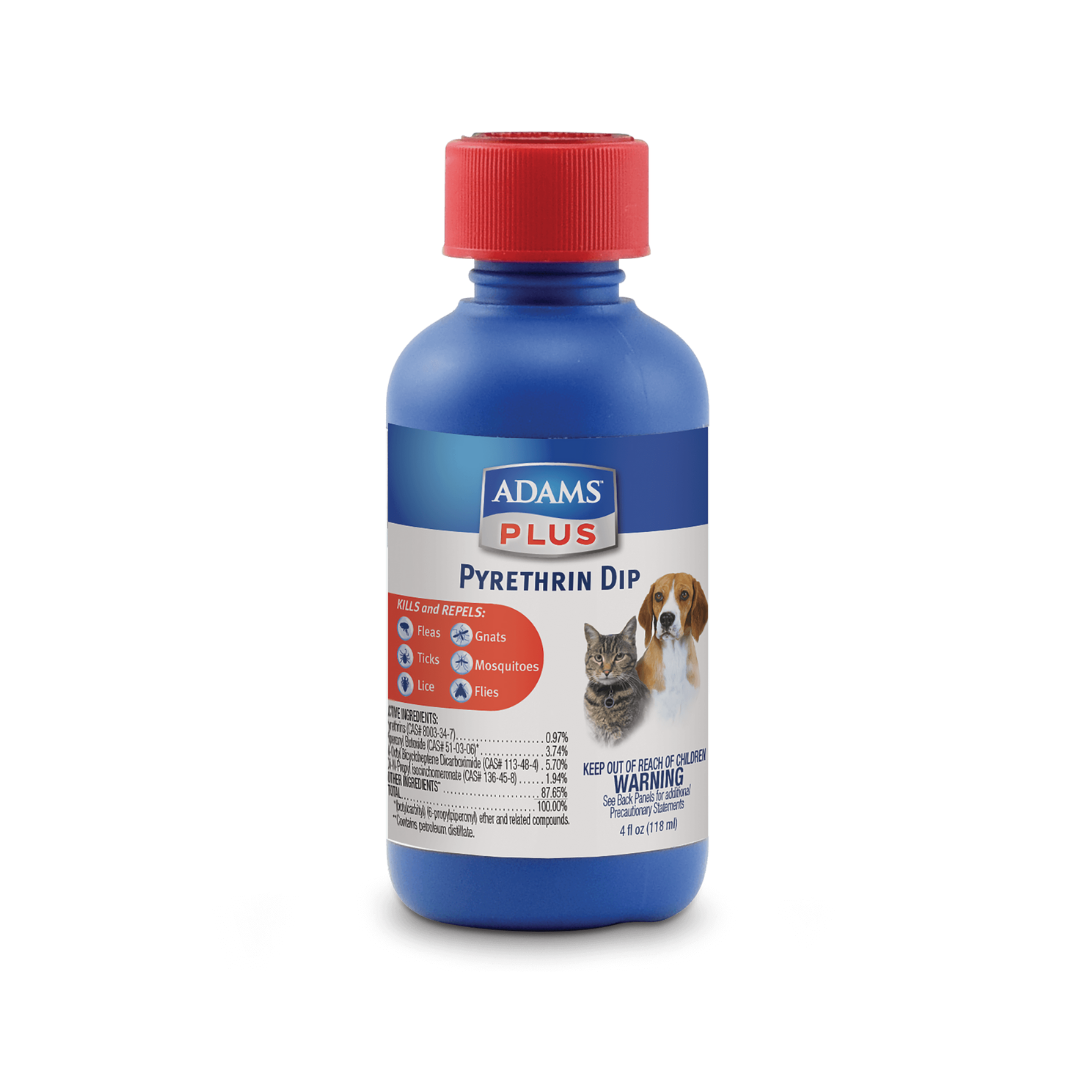 AGITAR BIEN ANTES DE CADA USO. Para matar pulgas, garrapatas y piojos, mezclar bien 1/2 oz (1 cucharada) de este producto con 1 galón de agua tibia. Preparar una solución nueva todos los días. Si el pelaje del animal está muy sucio, bañarlo primero con un champú Adams. El baño debe aplicarse sobre el pelaje seco o húmedo (no mojado). Pase una esponja o sumerja al animal con el producto diluido asegurándose de que todas las áreas estén empapadas hasta la piel. Dejar que el baño se seque en el animal. No usar más de un galón de baño Adams Plus Pyrethrin Dip diluido por animal. ¡No enjuagar! Repetir el tratamiento cada 7 días si es necesario